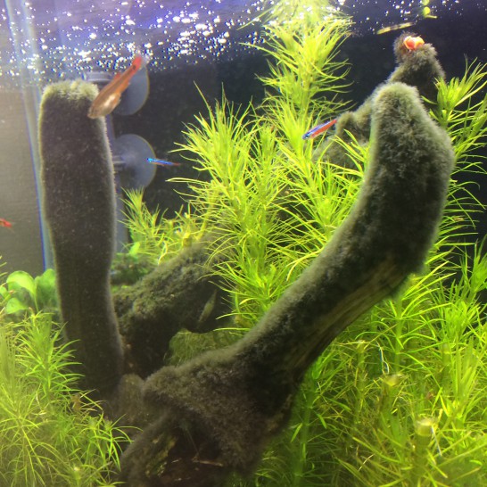 黒ひげみたいなコケには木酢液効果抜群!流木に活着している水草は外してからかけないと枯れるぞ。 -