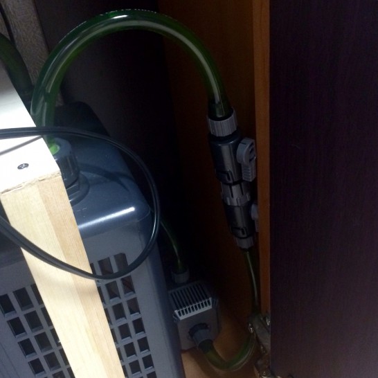 サテライトへの水供給を外部フィルター直にしてみたよ。サテライトLに対して5.4回転/h。十分かどうかは良くわからん。 -
