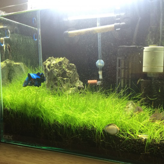 ヘアグラスの草原が完成した!が既にコケの悪の手が…トリミングして様子見。
