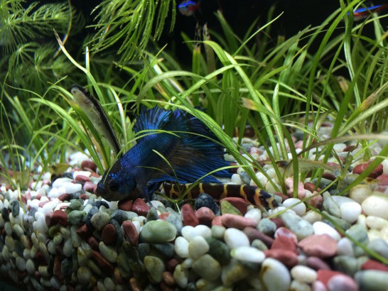 久々の30cm水槽。3匹揃ってなんてかわいいんだ!!!と思って見ているとベタの元気がない。 動きの早いテトラとアカヒレに先を越されて思ったように餌が食べられていないのが原因でほぼ間違いなし。 尻尾のツヤも悪くなってしまった。 ... -