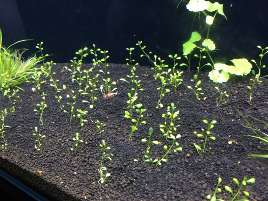 全8匹のはずが何回数えても7匹しか見つからない…。死体もないし、飛び出しもなさそうだけど…。残り7匹か。 グロッソも育ちませんなぁ。幾つかの苗の底にはイニシャルスティックが埋まっているのですが…さて、どうなりますやら。 -