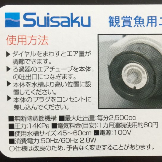 エアポンプ買ってきました。水作SPPP-3S。静かでパワフル。すっかりリピーターです。 SPPP-3Sはエア量を調整できるわけですが、どんな程度の、エア量が良いのか…?コメントによれば、1L/m以下…。底床の厚さにも寄るだろうし、あまりエアを弱くしても水位低...