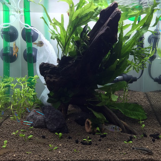 ようやく意図した形で流木が置けるようになったので、ミクロソリウムをくっつけて、とりあえず大掃除と年始のレイアウト完了。 時間に追われてしまい、適当にくぼみにミクロソリウム突っ込んで糸でクルクルしただけという手抜き(いつも通りかも?)でも、... -
