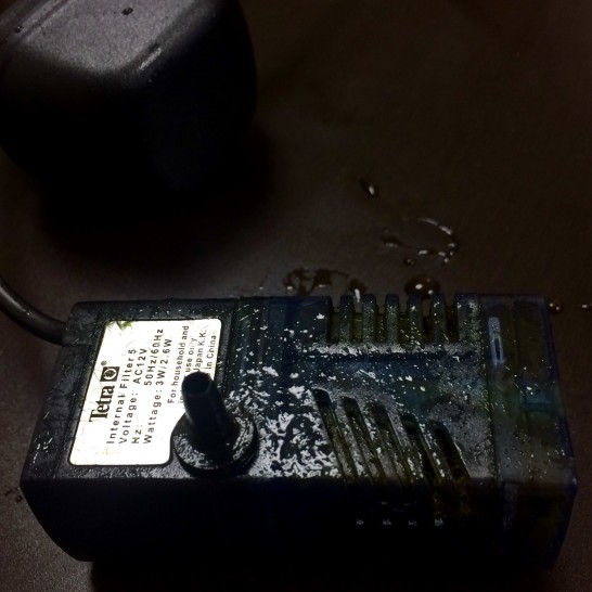 水中ポンプエア噛み。水草から上がった気泡が詰まった模様。 -
