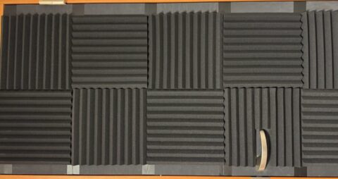 廊下側の面にも遮音材を施工する。吸音材を厚くするなど、工夫の余地はあるかもしれないが、廊下側を施工すると蝶番の強度が心配なのと、美観を損なうので、家族の了承が得られるかどうかという微妙な問題がある。なんとかして部屋側の対策で完了したい。